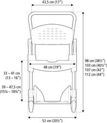 Material | Chassi: Pulverlackerat stålrör Sits/ryggstöd: Polypropen Armstöd: Polypropen Fotplatta: Polypropen Hjulfäste: Polyamid Hjul, låsbara, kullagrade: Polyamid/TPE |